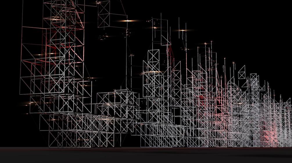 3ds max tyFlow setup for filling objects or text with growing trusses.